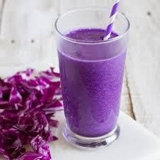 Purple Cabbage, Banana, Blueberries, Lime juice, Apple juice