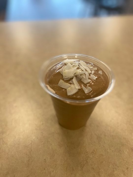 Almond Milk, Banana, Almonds, Cocoa, Agave, Cacoa, Coconut Chips, Seamoss, Coconut Granola