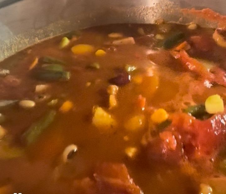 red skin potatoes, carrots, greenbeans, kidney beans, blackeye peas, stewed tomatoes, onions & peppers, herbal seasoning